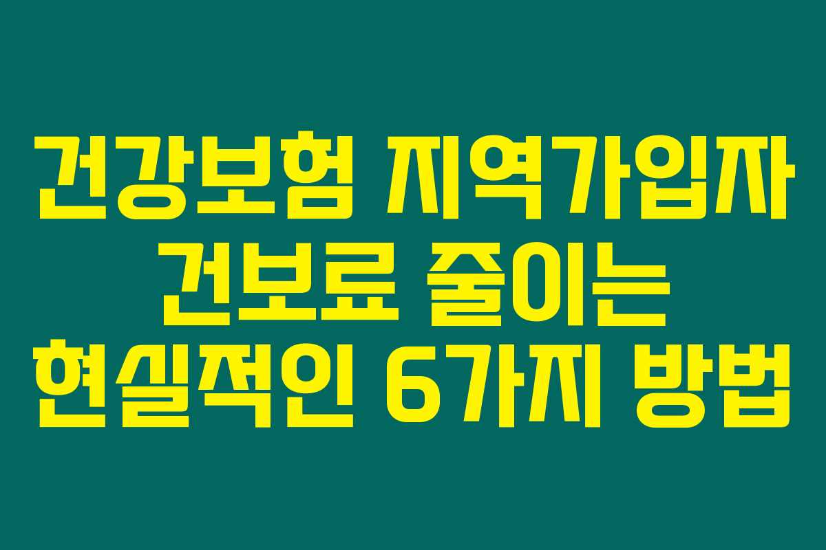 이번 글에서는 건강보험 지역가입자가 건보료를 줄일 수 있는 6가지 방법에 대해 살펴보았어요. 자신의 상황에 맞는 방법을 선택해 경제적 부담을 줄여보세요. 소득이 없다고 경제적으로 힘들어할 필요 없답니다!