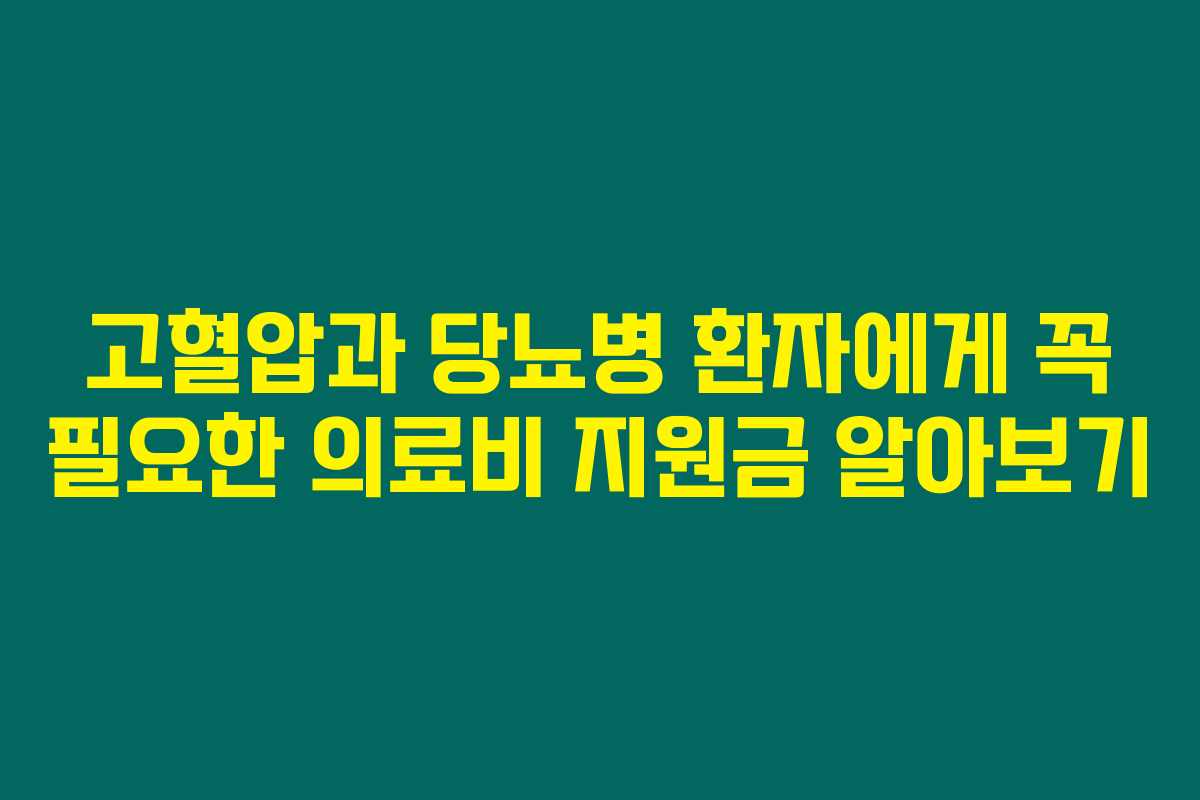 고혈압과 당뇨병 환자들은 조건을 충족할 경우, 의료비 지원을 받을 수 있습니다. 제가 직접 리서치한 바로는 다음과 같은 조건이 있습니다: