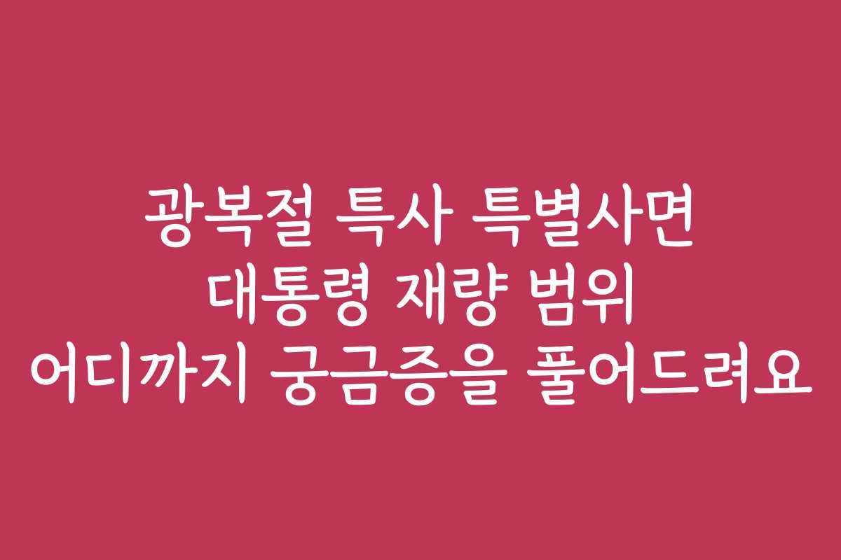 광복절 특사 특별사면은 매년 많은 사람들의 관심을 끌고 있는 주제입니다. 하지만 대통령의 재량이 어디까지인지에 대한 궁금증은 여전히 많이 존재합니다. 이번 포스팅에서는 광복절 특사 특별사면의 의미와 대통령의 권한, 그 범위를 명쾌하게 정리해드리겠습니다.