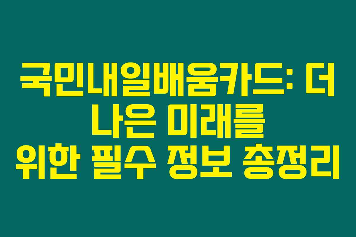 전반적으로 국민내일배움카드는 개인 경력을 쌓고, 새로운 기술을 배울 수 있는 유용한 도구입니다. 다양한 교육과정을 통해 저도 여러 가지 새로운 스킬을 배울 수 있었어요. 많은 분들이 이 기회를 활용하여 원하는 목표를 이루시길 바랍니다.