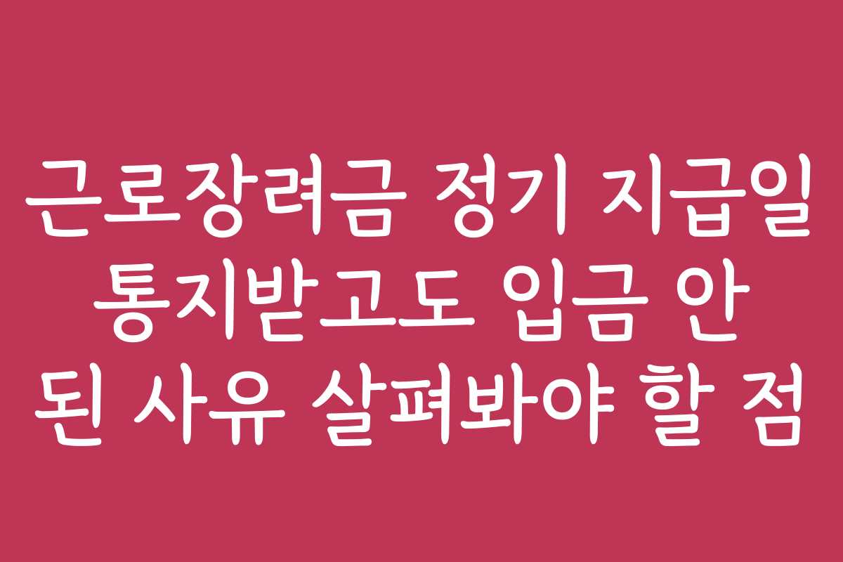 근로장려금 지급이 지연되고 걱정이신가요? 많은 사람들이 지급일이 지나고도 입금을 받지 못해 불안해 하고 있습니다. 이 글에서 근로장려금 정기 지급일 통지받고도 입금 안 된 사유 살펴봐야 할 점에 대해 알아보겠습니다.