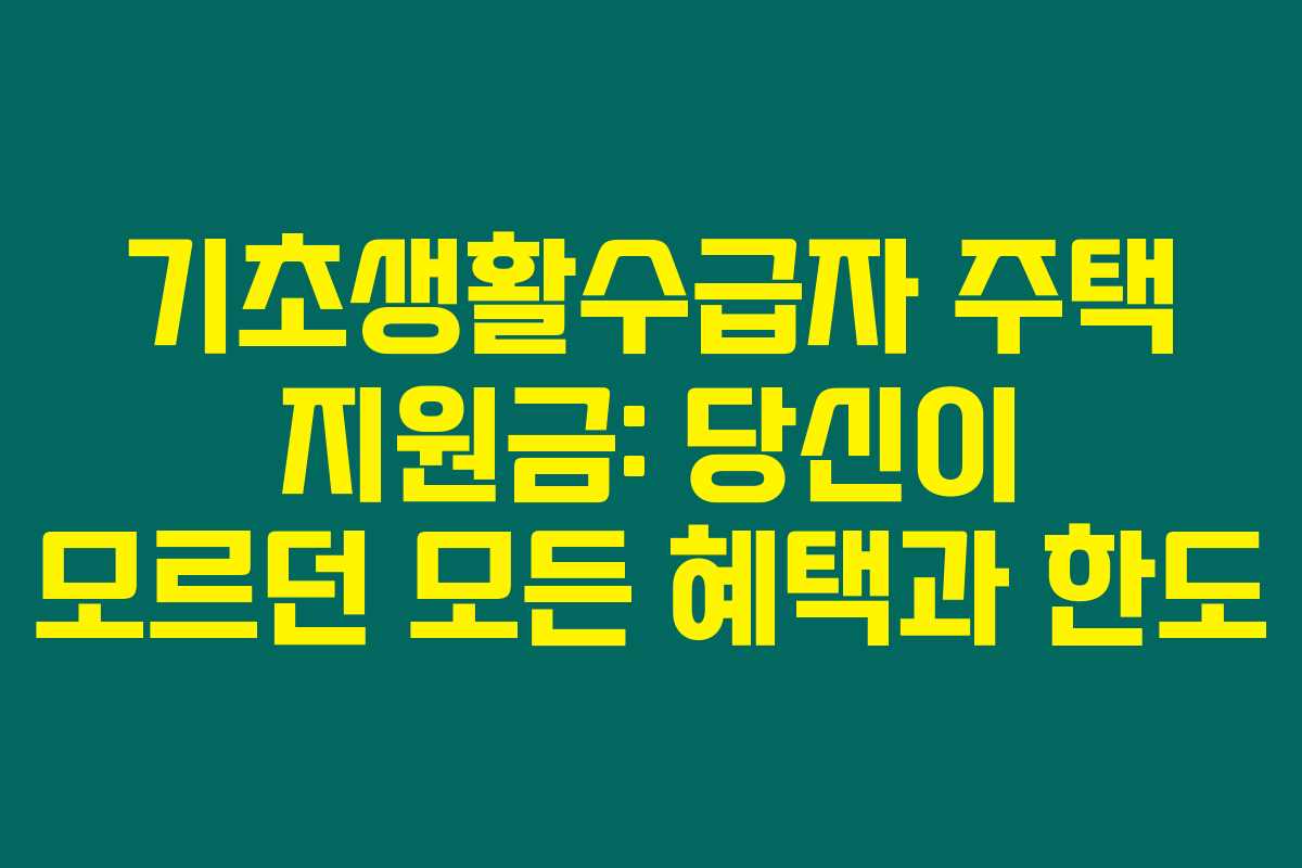 제가 직접 알아본 바로는, 기초생활수급자를 위한 주택 지원금은 그들의 생활 안정을 크게 도울 수 있는 중요한 제도에요. 이 글을 통해 주택 지원금의 종류와 최대 한도, 신청 방법에 대해 자세히 알아보도록 하겠습니다. 기초생활수급자는 정부로부터 전세자금 및 월세 지원, 임대주택 제공 등의 혜택을 받으며 좋은 주거 환경을 누릴 수 있어요. 아래를 읽어보시면 이와 관련된 여러 정보를 알릴게요.