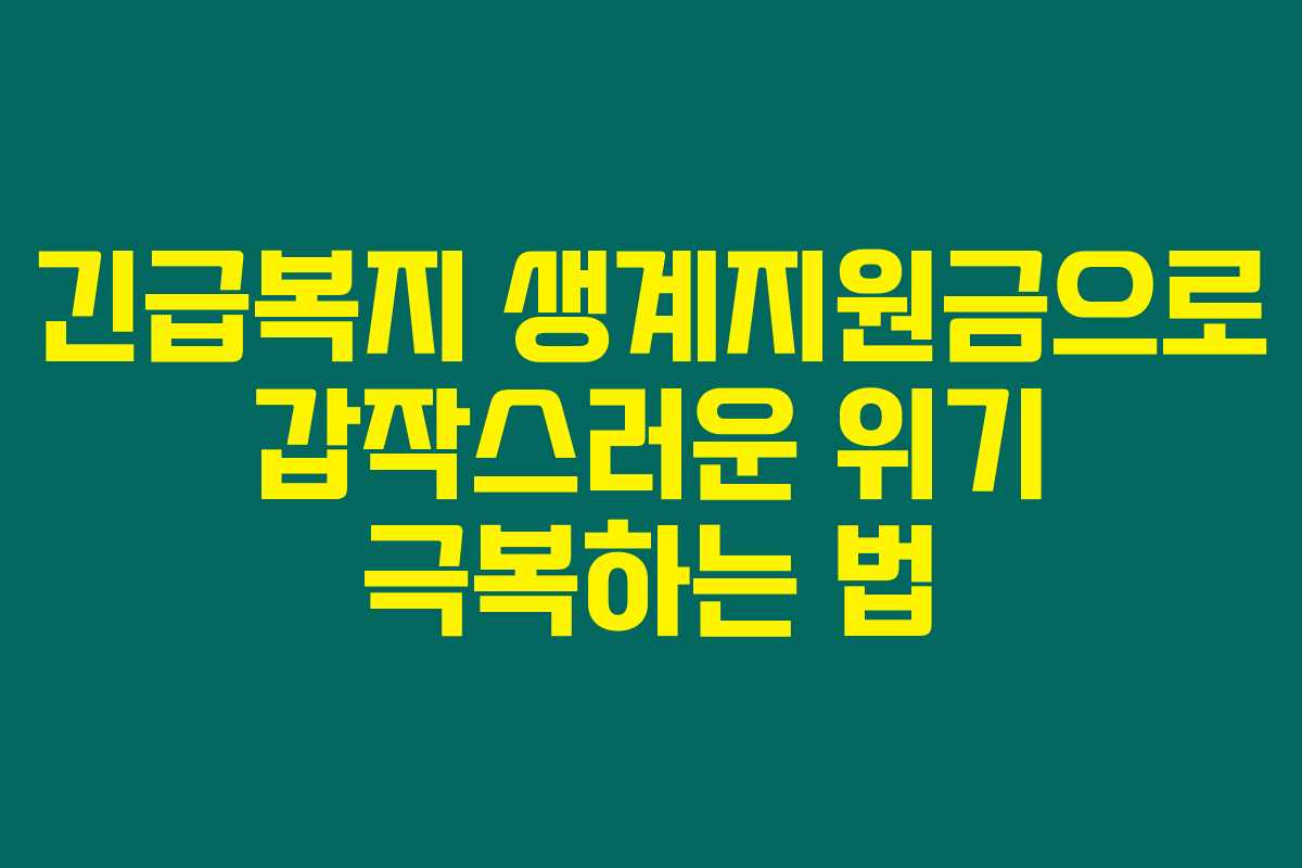 갑작스러운 실직이나 질병으로 인해 생계가 어려워지는 상황, 정말 상상하고 싶지 않은 일이지만 언제든지 일어날 수 있습니다. 제가 직접 경험해본 결과로는, 이런 힘든 순간에 정부의 긴급복지 생계지원금이 큰 도움이 될 수 있다는 것을 알게 되었어요. 이런 지원금의 신청 방법과 지원 대상, 지급일에 대해 아래를 읽어보시면 더욱 자세히 알 수 있을 거예요.