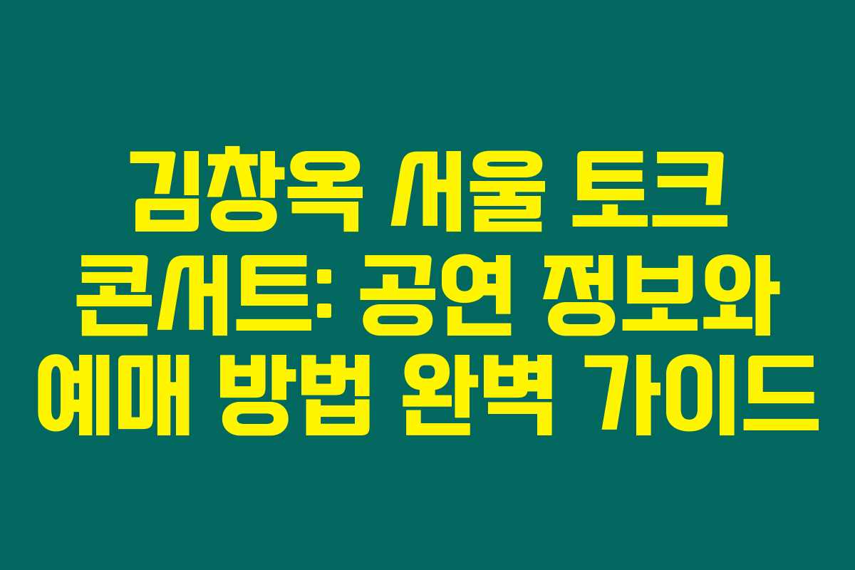 ### Q1: 김창옥 서울 토크 콘서트 예매는 어떻게 하나요?