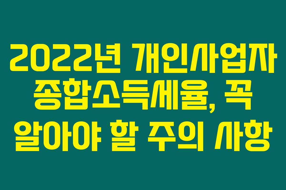 2022년 한 해를 돌아보면 많은 개인사업자 분들이 종합소득세 신고 준비로 바빴죠. 특히 5월에 납부하는 종합소득세는 매년 최대한 정확하게 준비해야 하는데요. 그렇다고 해서 걱정만 하실 필요는 없답니다. 아래를 읽어보시면 2022년 개인사업자 종합소득세율과 준비 시 유의해야 할 주의 사항을 자세히 알아보실 수 있어요.
