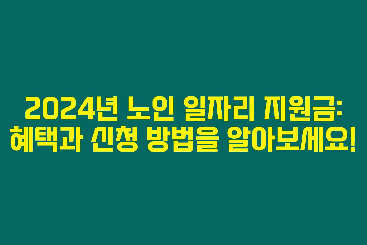 2024년 노인 일자리 지원금: 혜택과 신청 방법을 알아보세요!