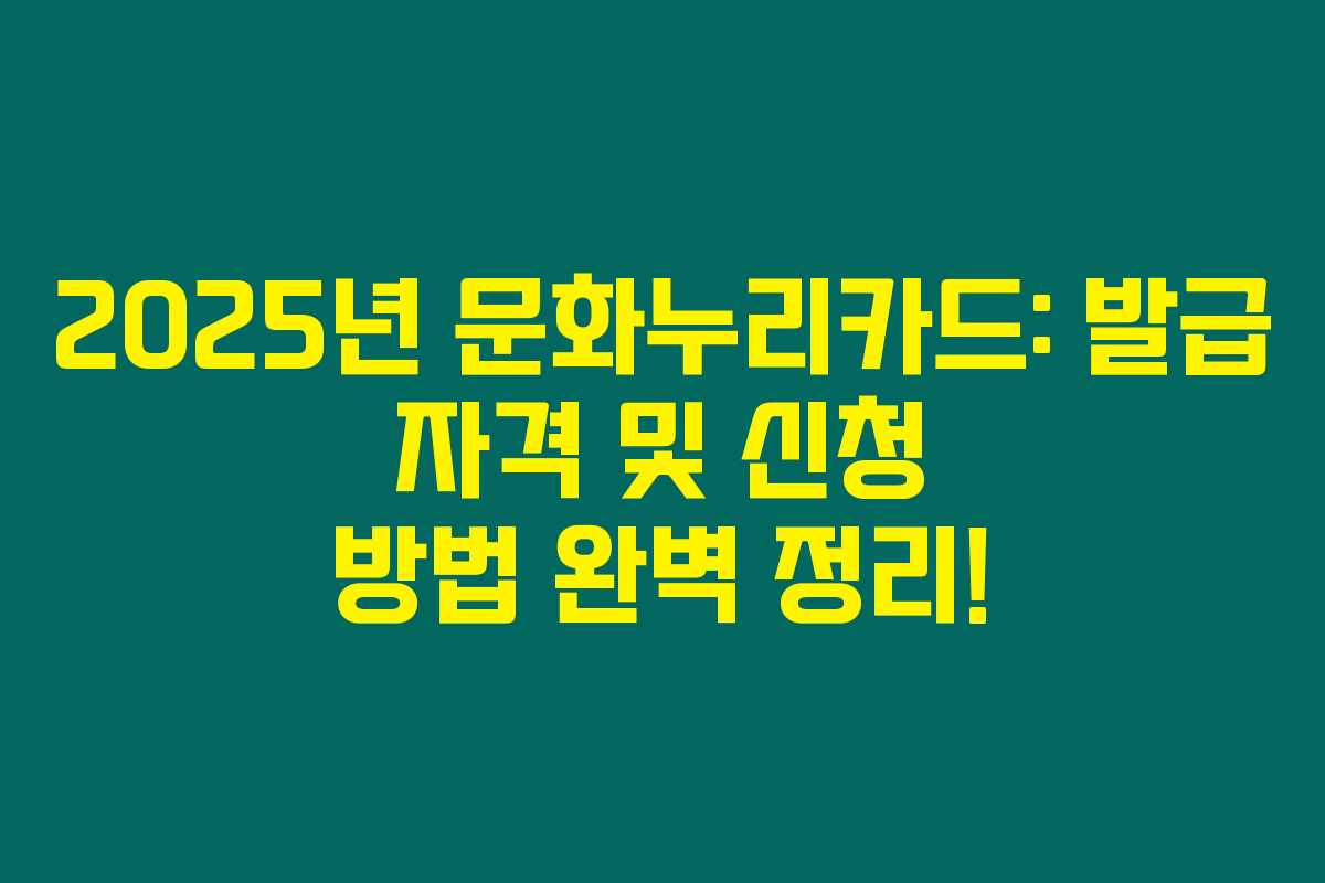 2025년 문화누리카드: 발급 자격 및 신청 방법 완벽 정리!