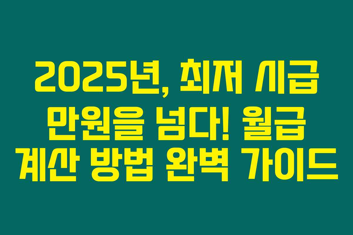 2025년 최저 시급 만원 돌파는 근로자들에게 중요한 변화를 가져올 것이며, 이에 따른 월급 계산법도 잘 알아두는 것이 필요하답니다. 개인의 조금 더 나은 미래를 계획하기 위해 미리 준비해두는 게 좋겠지요.