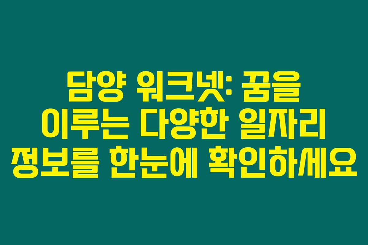 담양에서 일자리를 찾고 계신가요? 담양 워크넷을 통해 다양한 일자리 정보와 채용 공고를 쉽게 확인할 수 있습니다. 지역 주민들의 구직 활동을 지원하는 이 플랫폼은 정말 유용하답니다. 아래를 읽어보시면, 담양 워크넷을 통해 어떤 정보를 얻을 수 있는지 자세히 알려드릴게요!