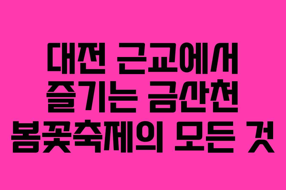 이러한 가이드를 통해 금산천 봄꽃축제를 보다 알차게 즐길 수 있습니다. 대전 근교에서의 소중한 시간을 만끽하기 위해 미리 준비하는 것이 중요합니다.