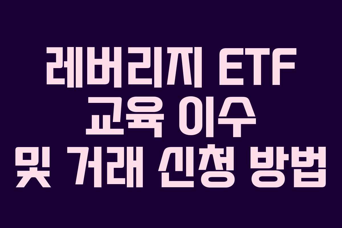 최근 주식시장이 회복세를 보이며 투자자들의 관심이 집중되고 있습니다. 특히 레버리지 ETF는 더 큰 수익을 추구하는 투자자들에게 매력적인 선택으로 떠오르고 있습니다. 하지만 일반 주식과 마찬가지로 거래가 가능하다고 생각할 수 있지만, 레버리지 ETF는 투자 위험 요소가 존재하여 사전에 교육 이수가 요구됩니다. 오늘은 레버리지 ETF 교육을 이수하고 NH투자증권 앱에서 거래 신청하는 방법을 안내하겠습니다.