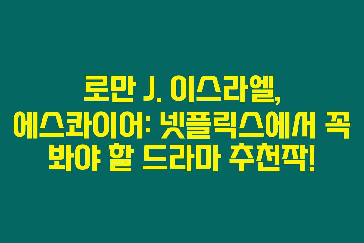 결국 이 영화는 법률과 도덕, 돈과 윤리의 경계를 탐구하며 힘든 선택을 하는 로만을 통해 우리에게도 많은 질문을 남겨줘요. 여러분도 이 영화를 통해 삶의 진정한 의미를 찾을 수 있을 거예요!