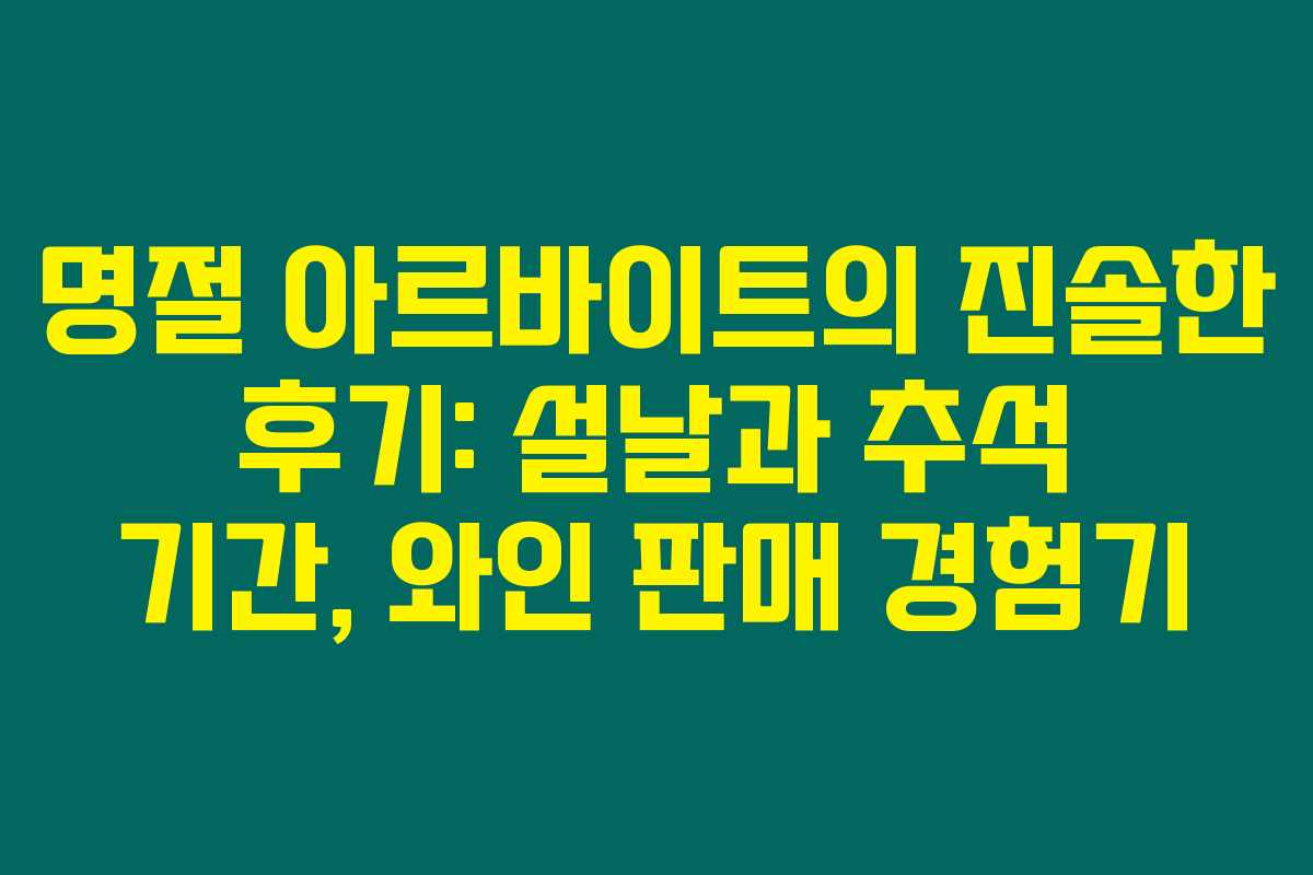 명절은 누구에게나 특별한 시간이죠. 설날과 추석 동안 술과 음식, 선물 세트 판매가 급증하기 때문에 아르바이트 기회도 많아집니다. 하지만, 그 이면의 실제 경험은 어떤지 궁금하지 않으신가요? 이번 포스트는 제 경험을 토대로 명절 아르바이트, 특히 와인 판매 아르바이트에 대한 솔직한 후기를 공유하려 해요. 아래를 읽어보시면 실질적인 정보와 감성을 담은 후기들로 가득할 거예요.