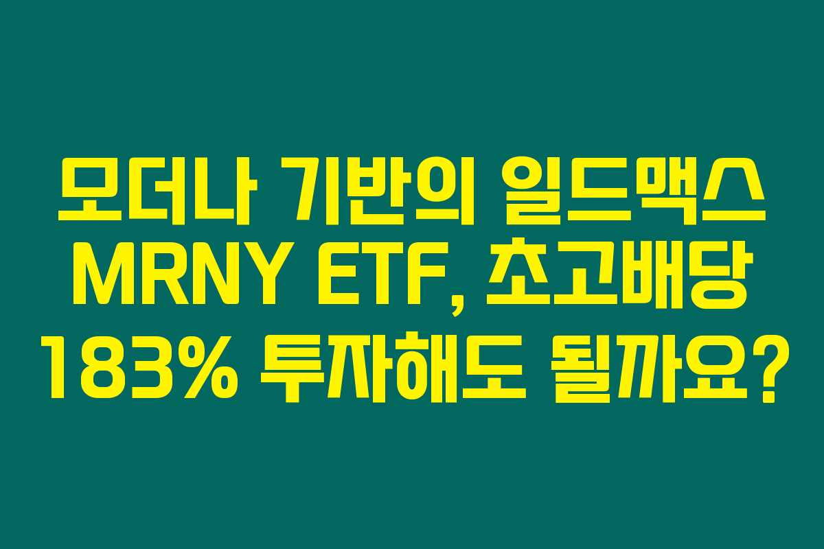 제가 경험해본 바로는, 많은 투자자들이 초고배당 ETF인 MRNY에 관심을 두고 투자 결정을 내리고 있습니다. 그런데 단순히 배당률이 높다고 해서 무조건 좋은 투자라고 보장할 수는 없어요. 아래를 읽어보시면, MRNY ETF와 모더나의 현황을 통해 고배당 ETF 투자에 필요한 신중한 접근에 대해 알아보도록 하겠습니다.