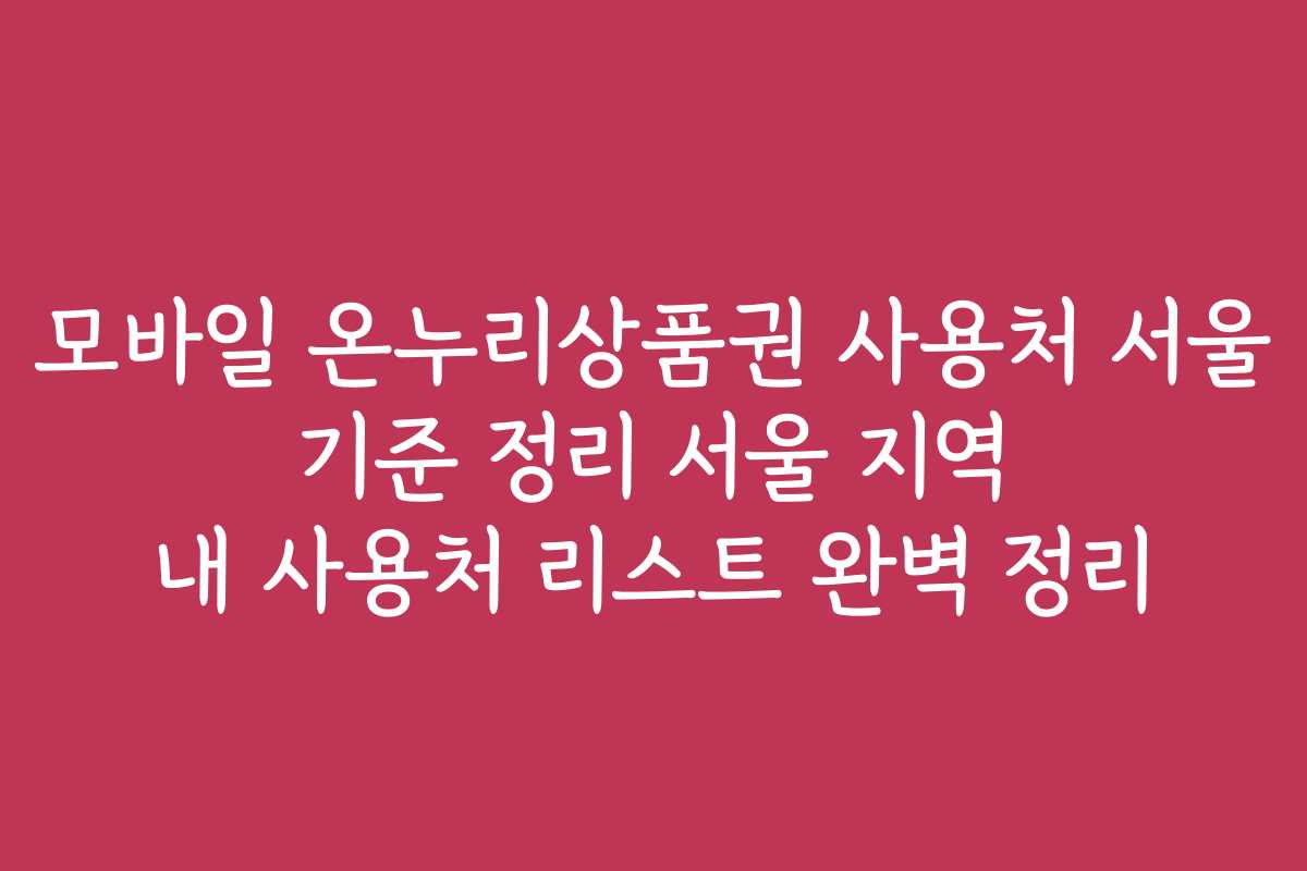 모바일 온누리상품권 사용처 서울 기준 정리 서울 지역 내 사용처 리스트 완벽 정리