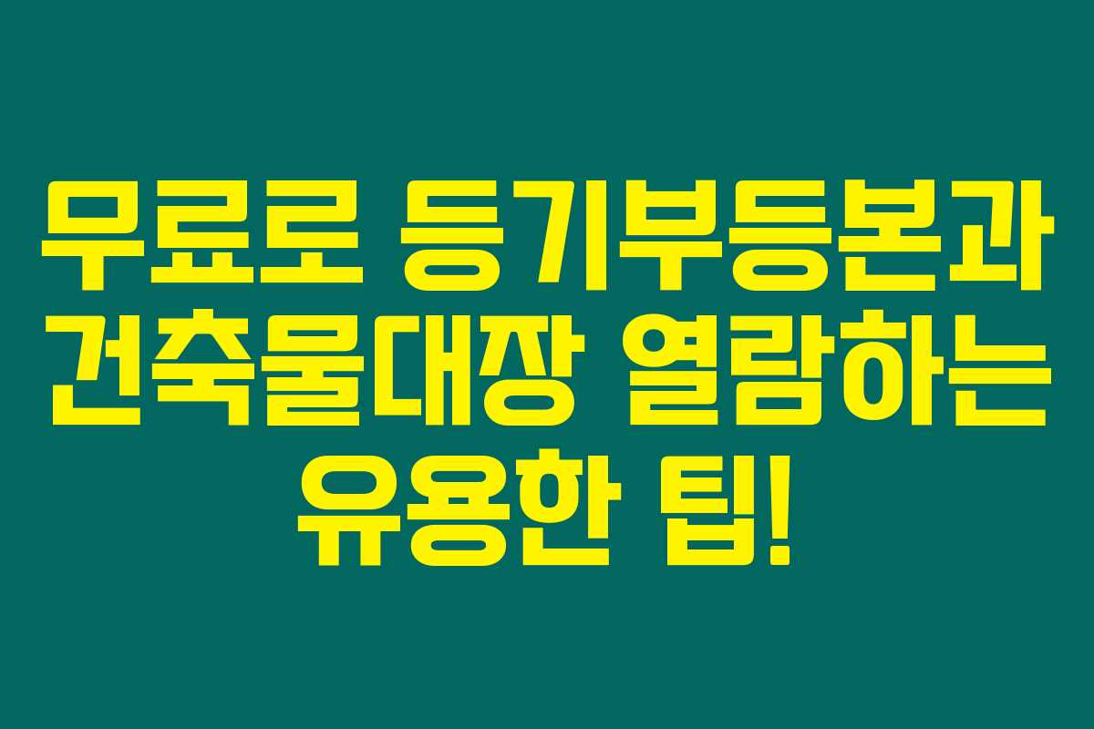 제가 직접 경험해본 결과로는, 부동산 관련 거래를 진행하며 등기부등본 및 건축물대장을 확인하는 것이 정말 중요하더라고요. 아래를 읽어보시면, 이 두 가지 서류를 무료로 열람하는 간단한 방법에 대해 알려드릴게요!