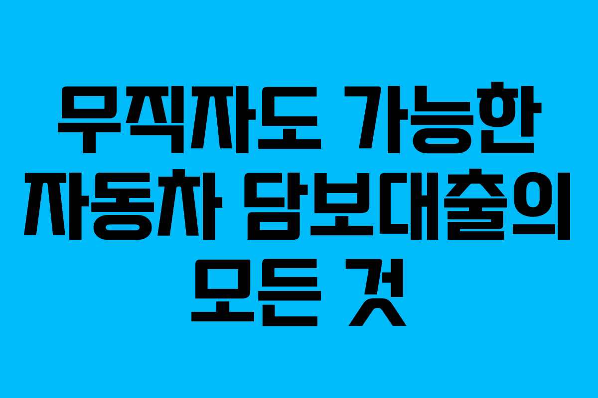 - 무직자도 자동차 담보대출을 받을 수 있나요?