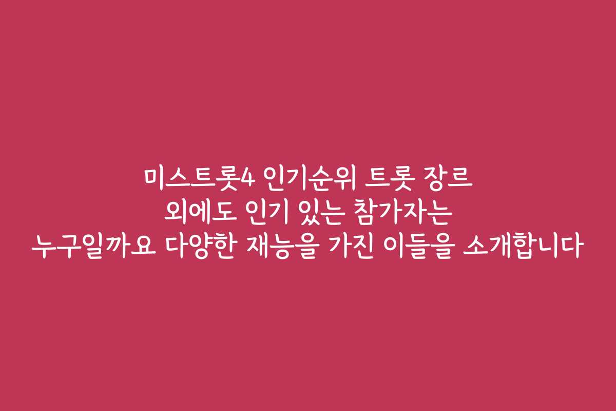 미스트롯4 인기순위 트롯 장르 외에도 인기 있는 참가자는 누구일까요 다양한 재능을 가진 이들을 소개합니다