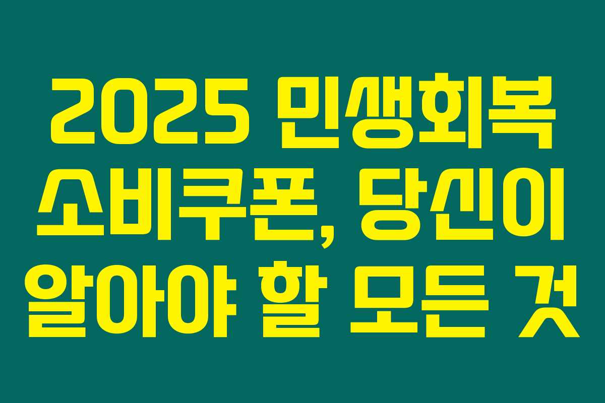 2025년 민생회복 소비쿠폰은 국민 생활의 안정과 지역 경제의 활성화를 동시에 꾀할 수 있는 중요한 정책입니다. 지급 일정인 7월 중순이 다가오기 전에, 최대 52만 원의 혜택을 놓치지 마세요! 저 또한 여러분과 함께 유익한 정보를 나누며 보다 나은 경제생활을 응원할게요.