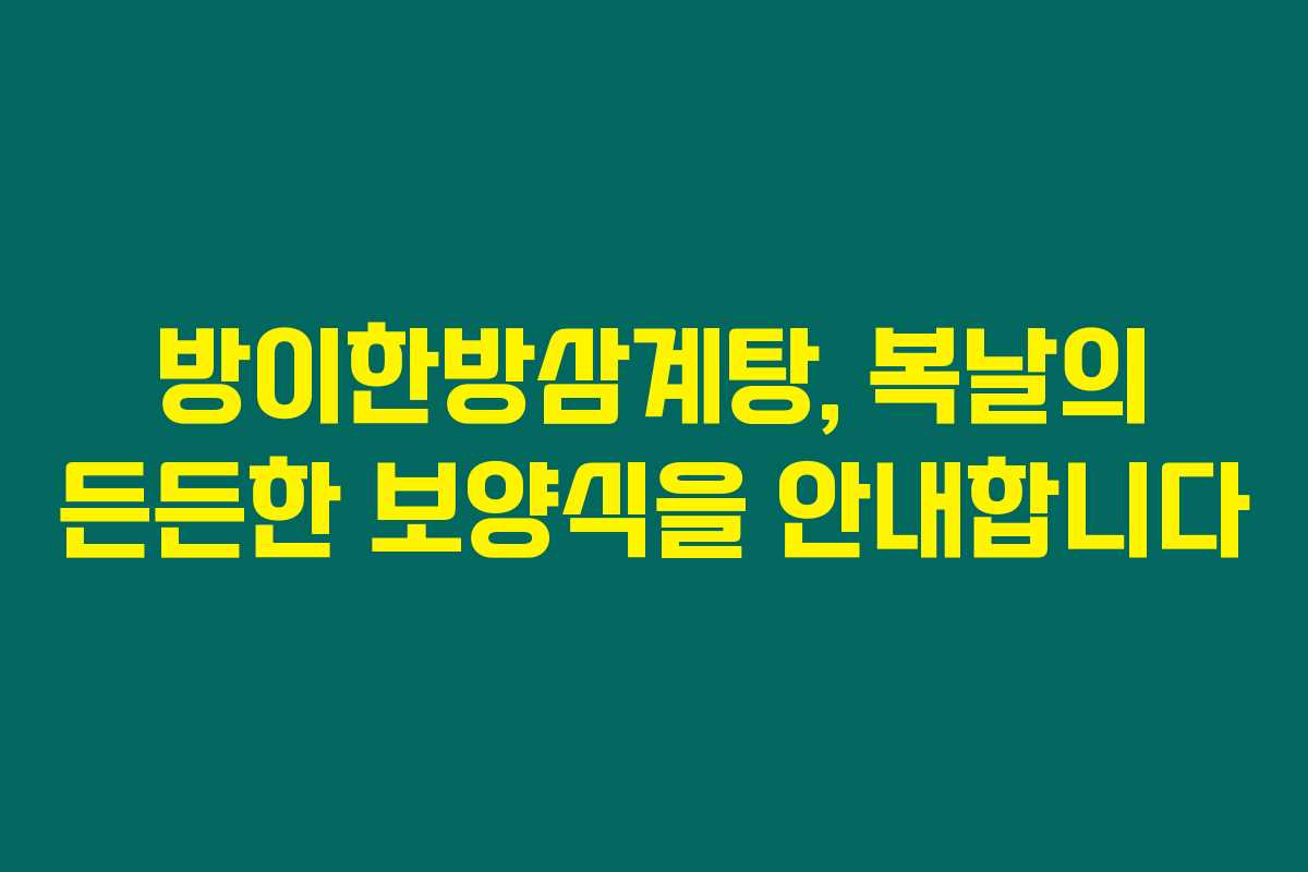 제가 직접 알아본 바로는, 배고픈 여름 복날에 가장 잘 어울리는 보양식은 바로 방이한방삼계탕이라 할 수 있습니다. 여름의 더위를 이겨내기 위해 많은 사람들이 찾는 이 곳의 맛과 매력을 아래를 읽어보시면 확인할 수 있을 거예요.