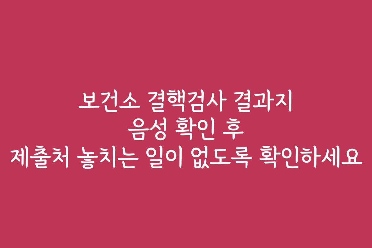 결핵검사, 결과지, 음성, 제출처, 관리 방법, 검사 후 처리, 서류 제출, 건강 검진, 필요 서류, 재검사, 보건소