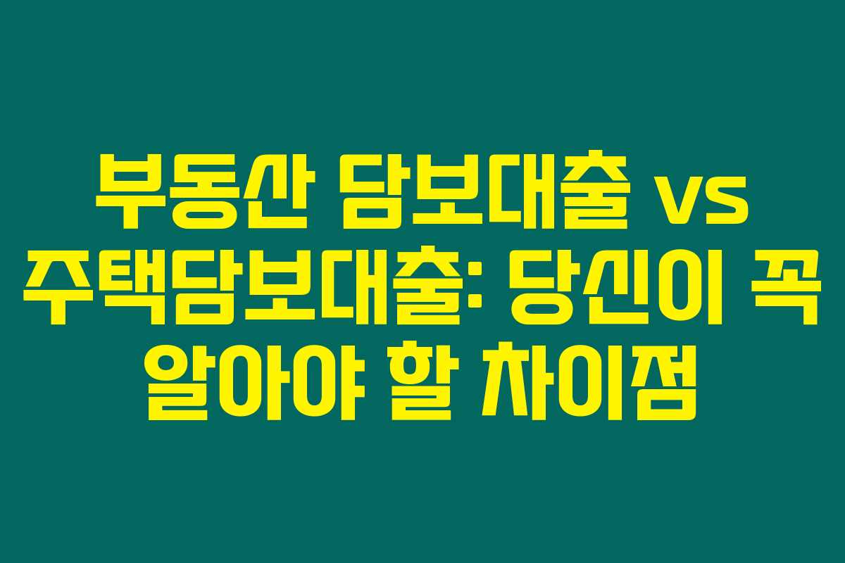 제가 직접 알아본 바로는, 부동산 시장에서 대출을 이용하는 것은 그 자체로 복잡한 헤아림이 필요한 과정이에요. 특히 부동산 담보대출과 주택담보대출은 많은 사람들이 혼동하기 쉬운 용어라는 점에서 구분이 중요하답니다. 아래를 읽어보시면 이 두 대출의 기본 개념부터 차이점, 장단점까지 쉽게 이해할 수 있을 것입니다.