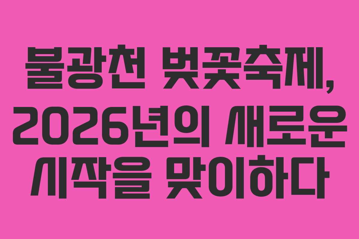 매년 봄이 오면 벚꽃이 만개하는 시기가 다가오며, 많은 사람들이 그 아름다움을 즐기기 위해 각지에서 벚꽃축제를 찾습니다. 특히 서울의 불광천에서 열리는 벚꽃축제는 지역 주민과 관광객 모두에게 큰 사랑을 받고 있습니다. 2026년에도 이 축제는 예전처럼 많은 이들에게 즐거움을 선사할 것입니다.
