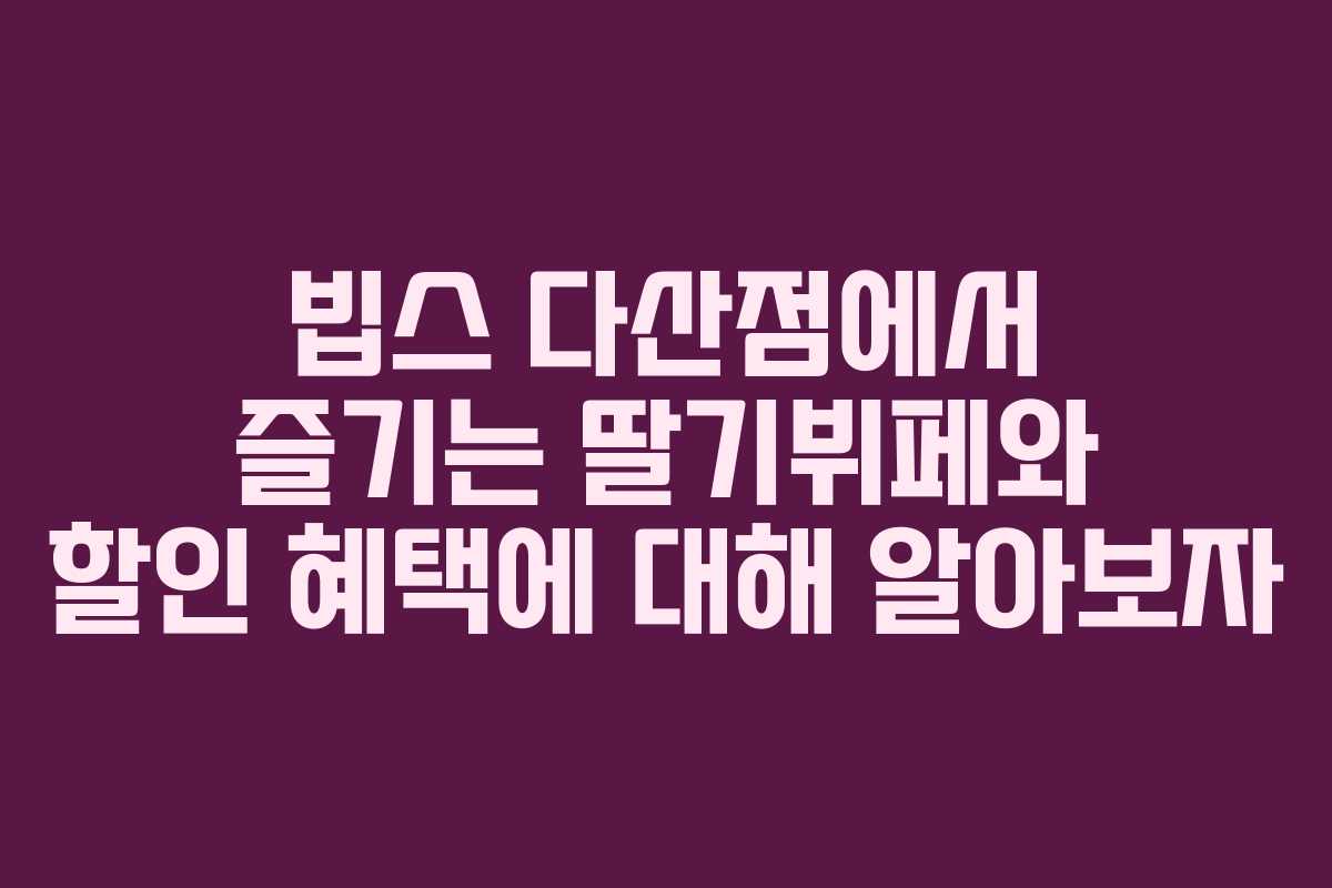 2026년, 빕스 다산점에서 진행되는 딸기뷔페는 많은 이들에게 새로운 미식 경험을 선사하고 있습니다. 이 특별한 이벤트는 고급스러운 분위기와 함께 다양한 딸기 요리를 맛볼 수 있는 기회를 제공합니다. 특히, 90% 할인된 가격으로 제공되는 쿠폰을 통해 더 많은 고객들이 저렴하게 이 맛있는 경험을 즐길 수 있습니다. 이 글에서는 빕스의 딸기뷔페와 관련된 모든 정보를 자세히 살펴보겠습니다.