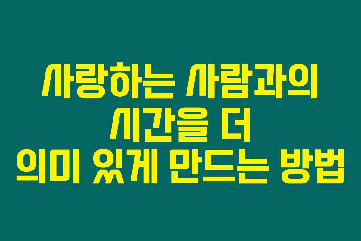 사랑하는 사람과의 시간을 늘리고 소중히 잘 가꾸는 방법은 결국 아이디어와 마음가짐이에요. 이 작은 노력으로도 더 많은 행복을 느낄 수 있답니다.