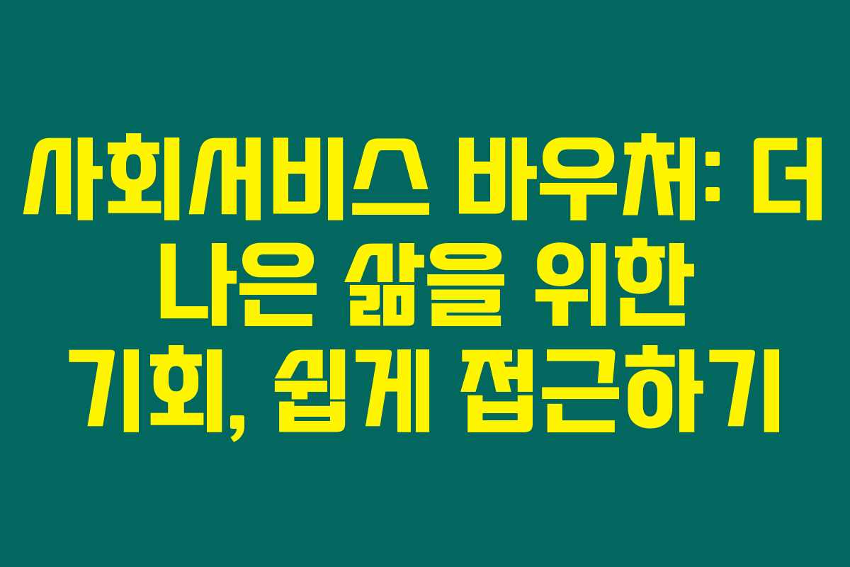 제가 직접 알아본 바로는 사회서비스 바우처는 저소득층과 취약계층에게 필요한 서비스에 대한 경제적 지원을 제공하는 매우 중요한 제도입니다. 이 글에서는 사회서비스 바우처의 정의, 종류, 신청 방법 및 사용처에 대한 정보를 자세히 설명합니다. 아래를 읽어보시면 이 제도를 통해 여러분이 누릴 수 있는 혜택을 한눈에 이해할 수 있을 것입니다.
