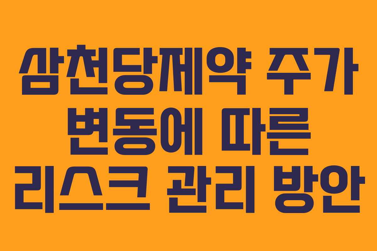 삼천당제약 주가 변동에 따른 리스크 관리 방안