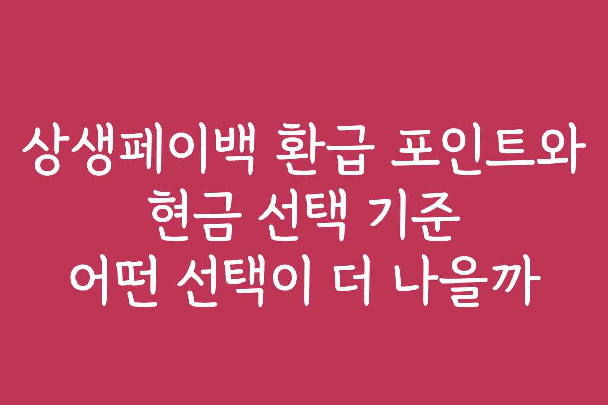 상생페이백 환급 포인트와 현금 선택 기준은 많은 사람들에게 고민거리가 되고 있습니다. 포인트로 받을지, 현금으로 받을지 선택하는 것이 참 어렵기 때문인데요. 이 글에서는 두 가지 방법의 장단점을 알아보고, 어떤 선택이 더 유리할지에 대해 알아보겠습니다.