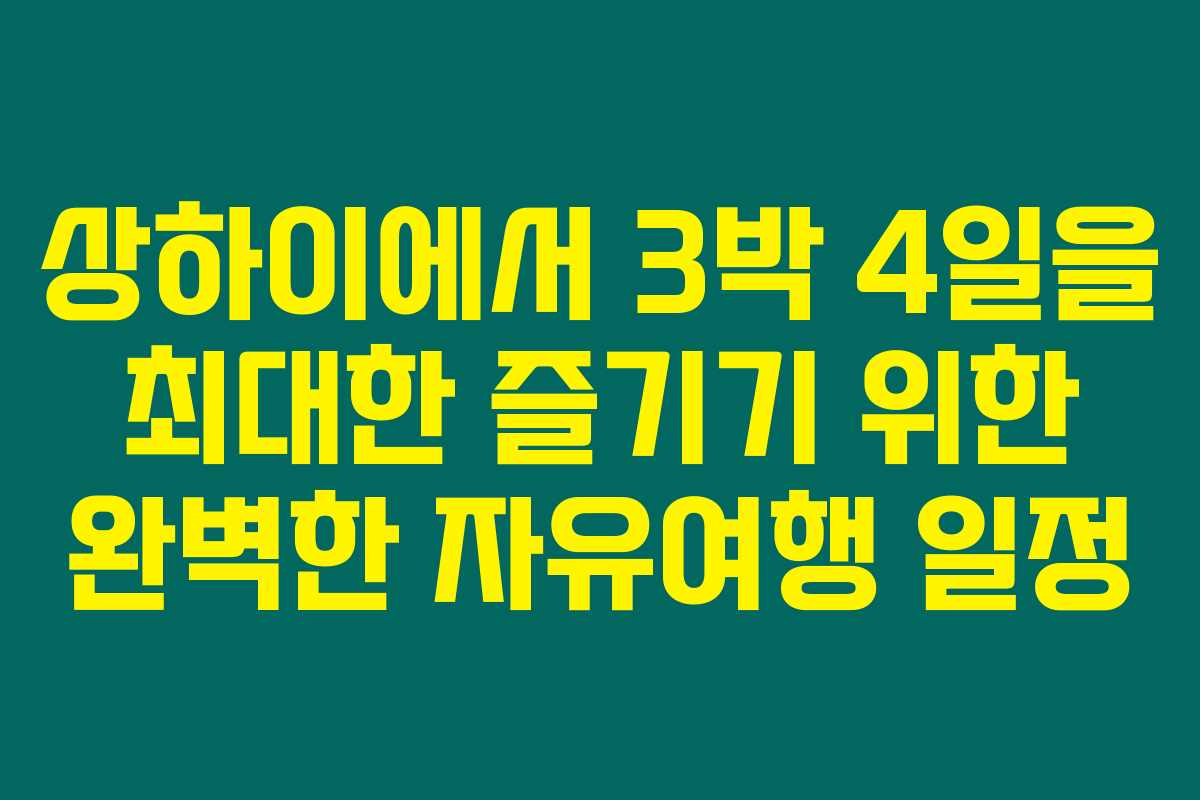 이처럼 상하이는 3박 4일 동안 매일매일이 다채롭고 특별한 경험으로 가득하답니다. 이 일정으로 준비하신다면 즐거운 상하이 여행을 즐기실 수 있을 거예요!