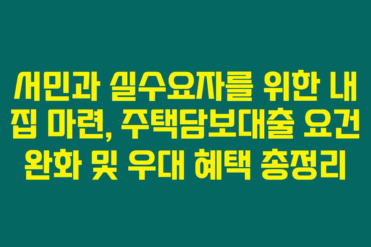 서민과 실수요자를 위한 내 집 마련, 주택담보대출 요건 완화 및 우대 혜택 총정리