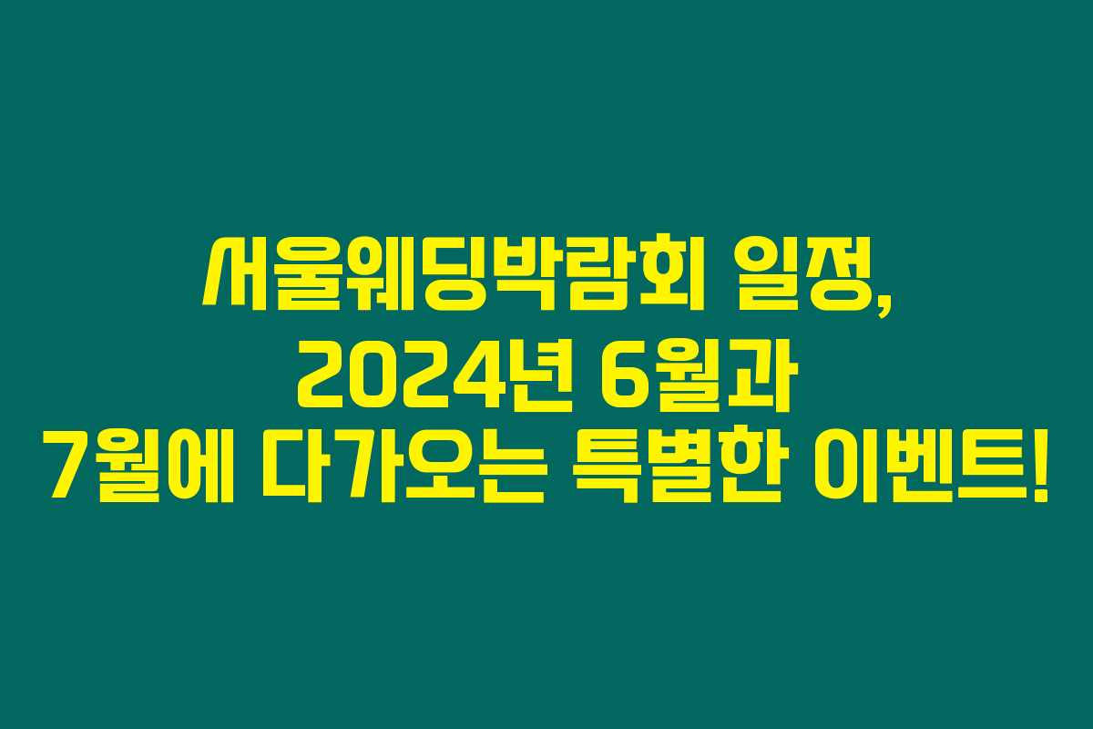 서울웨딩박람회는 2024년 6월과 7월에 개최되며, 다양한 업체와 이벤트가 가득한 특별한 행사입니다.