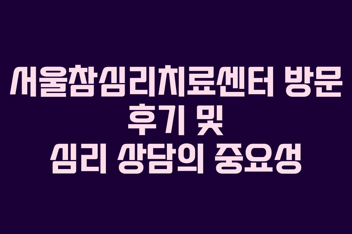 서울참심리치료센터 방문 후기 및 심리 상담의 중요성