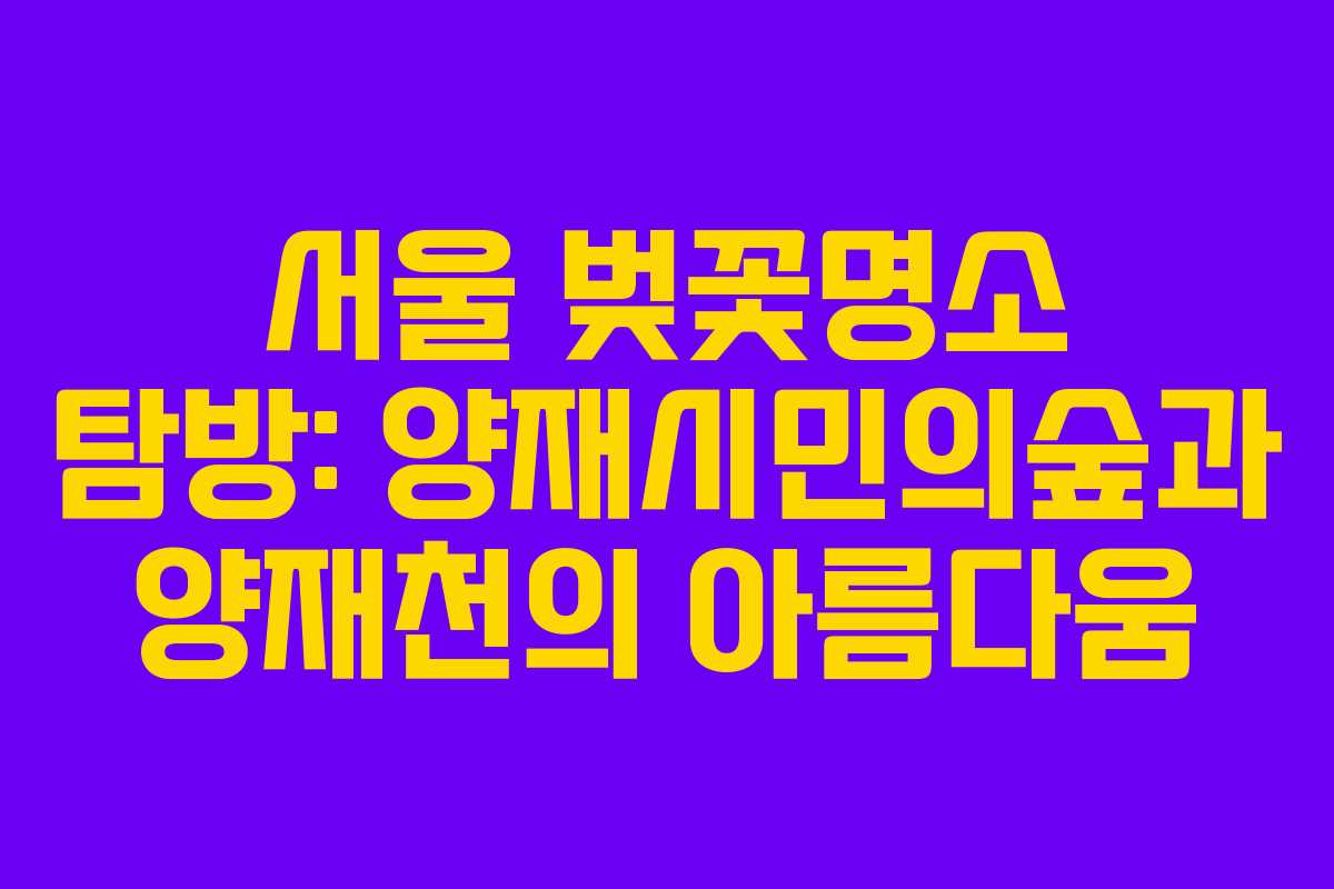서울의 봄을 대표하는 벚꽃 시즌이 돌아왔습니다. 특히 양재시민의숲과 양재천은 올해도 많은 방문객들을 맞이하며 그 아름다움을 뽐내고 있습니다. 이번 글에서는 2026년 기준으로 업데이트된 양재시민의숲과 양재천의 벚꽃 명소에 대해 소개하겠습니다.