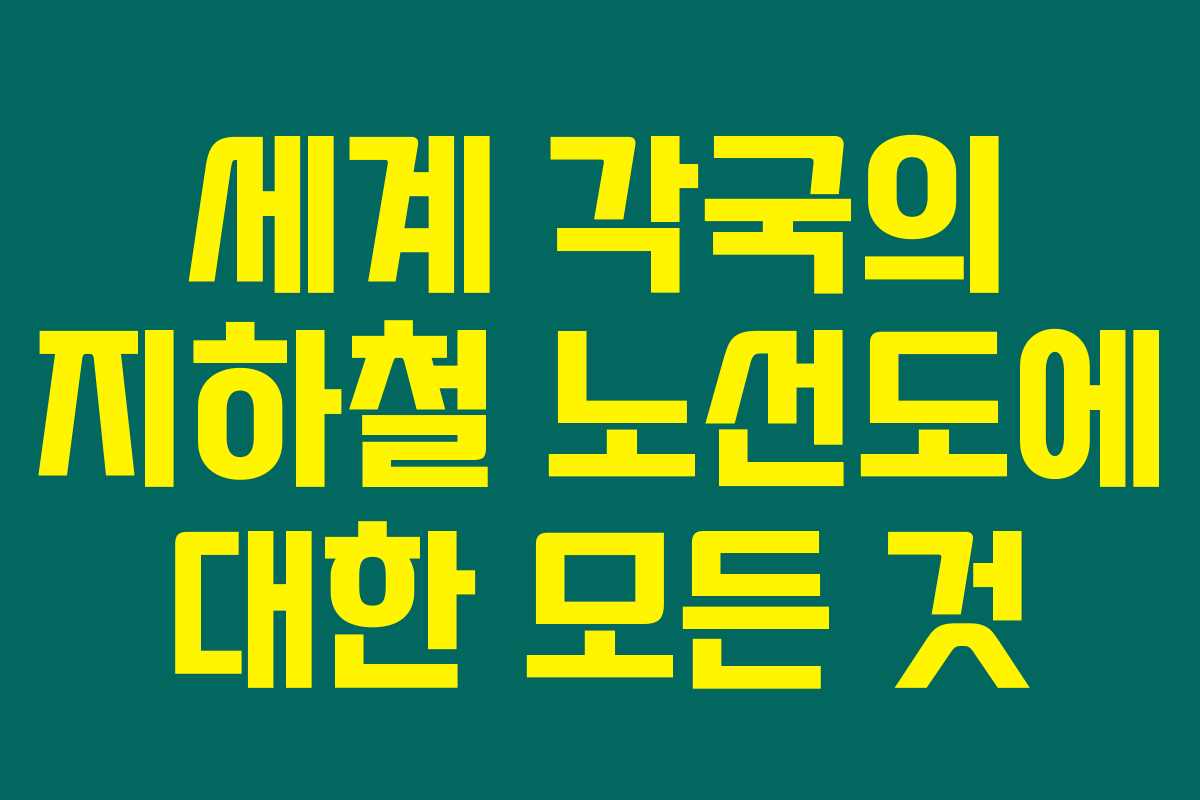 지하철이 점점 더 많은 국가에서 대중교통 수단으로 각광받고 있다는 사실은 아시나요? “세계 각국의 지하철 노선도”를 찾고 계신다면, 아래를 읽어보시면 필수적인 정보들을 확인할 수 있을 거예요. 실속 있는 정보를 통해 지하철 이용을 더욱 편리하게 만들어보세요.