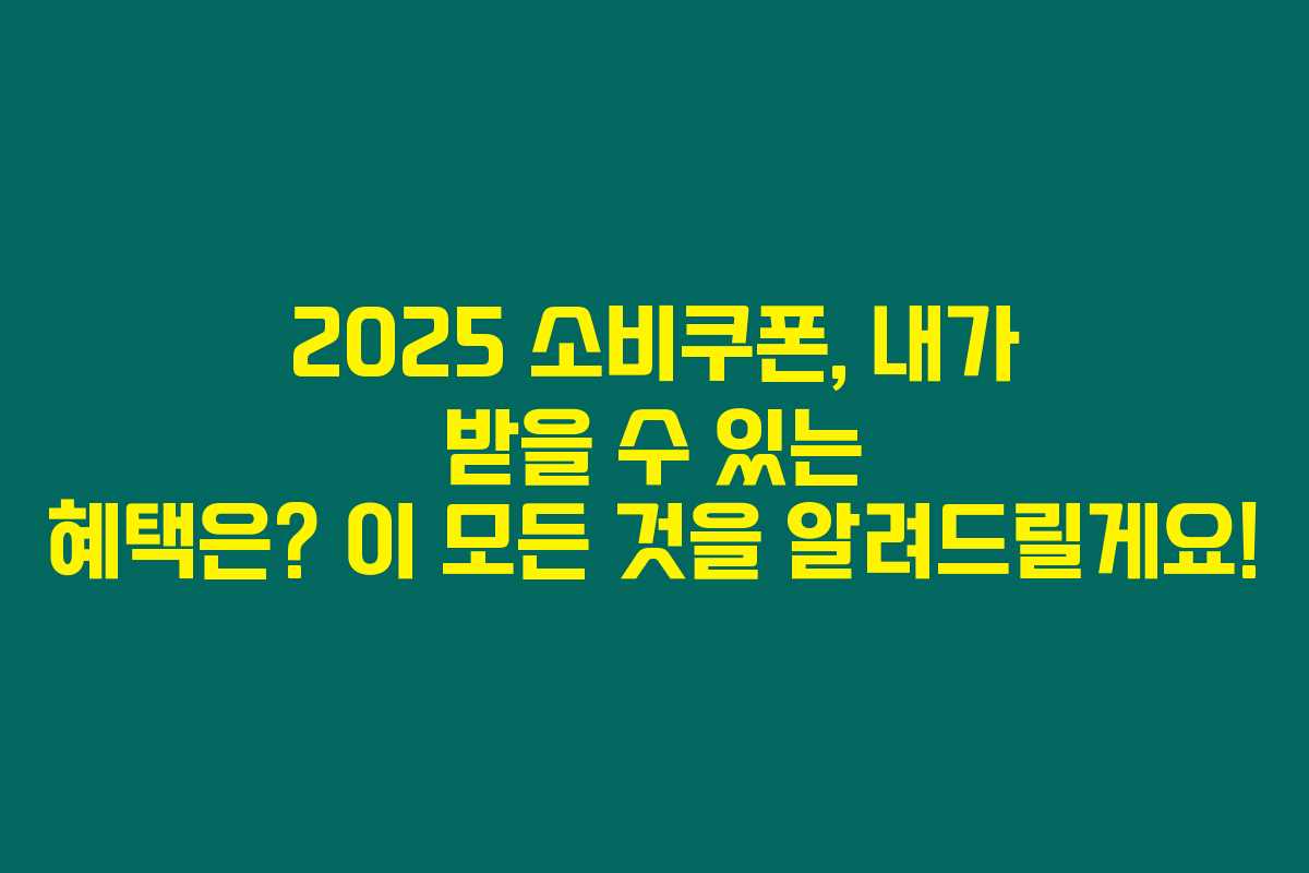 2025 소비쿠폰, 내가 받을 수 있는 혜택은? 이 모든 것을 알려드릴게요!