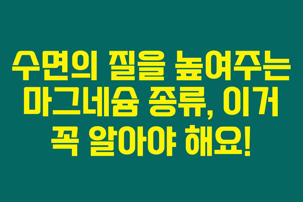 자아! 이제 마그네슘이 정말 우리의 수면에 중요한 역할을 한다는 걸 알겠죠?