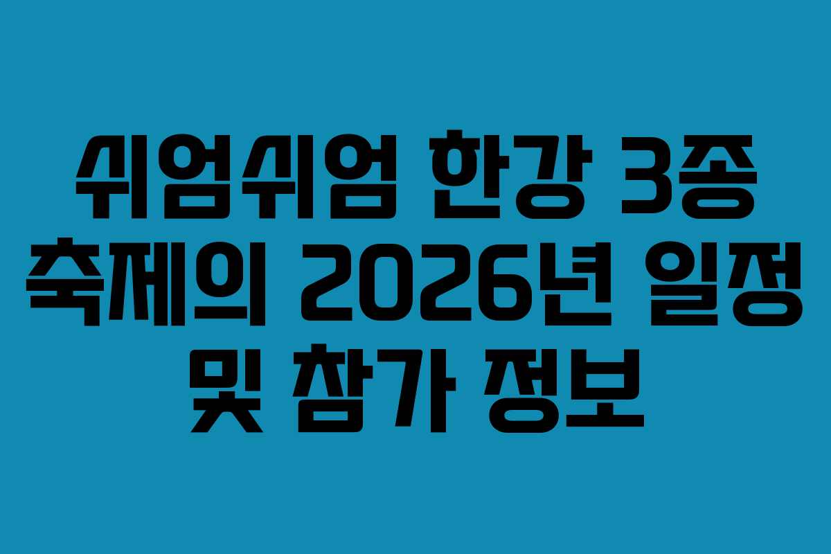 쉬엄쉬엄 한강 3종 축제의 2026년 일정 및 참가 정보