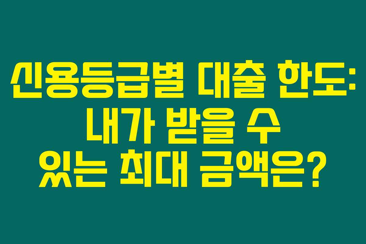신용등급에 따라서 대출 한도는 크게 달라지지요. 높은 신용등급을 유지하는 것이 대출 받을 때 도움이 많이 된다니, 꼭 관리해보세요. 부족한 부분이 있다면, 다시 한 번 신용등급 개선에 대한 노력을 해보는 것을 추천합니다. 여러분의 대출이 성공적이기를 바랄게요!
