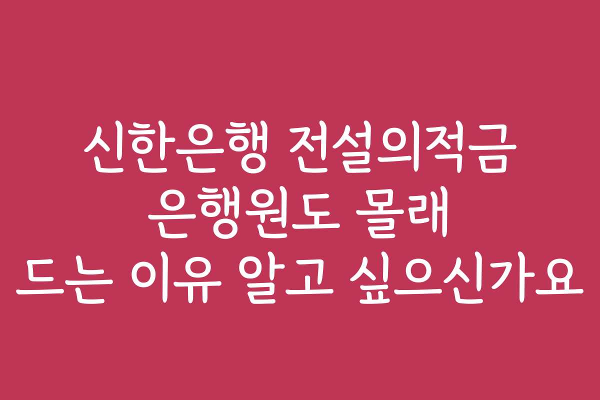 신한은행 전설의적금이 궁금하신가요? 이 특별한 적금이 왜 은행원들 사이에서도 인기가 많을까요? 많은 분들이 이 비밀을 알고 싶어합니다. 이번 글에서는 신한은행 전설의적금에 대한 모든 것을 공유하겠습니다.
