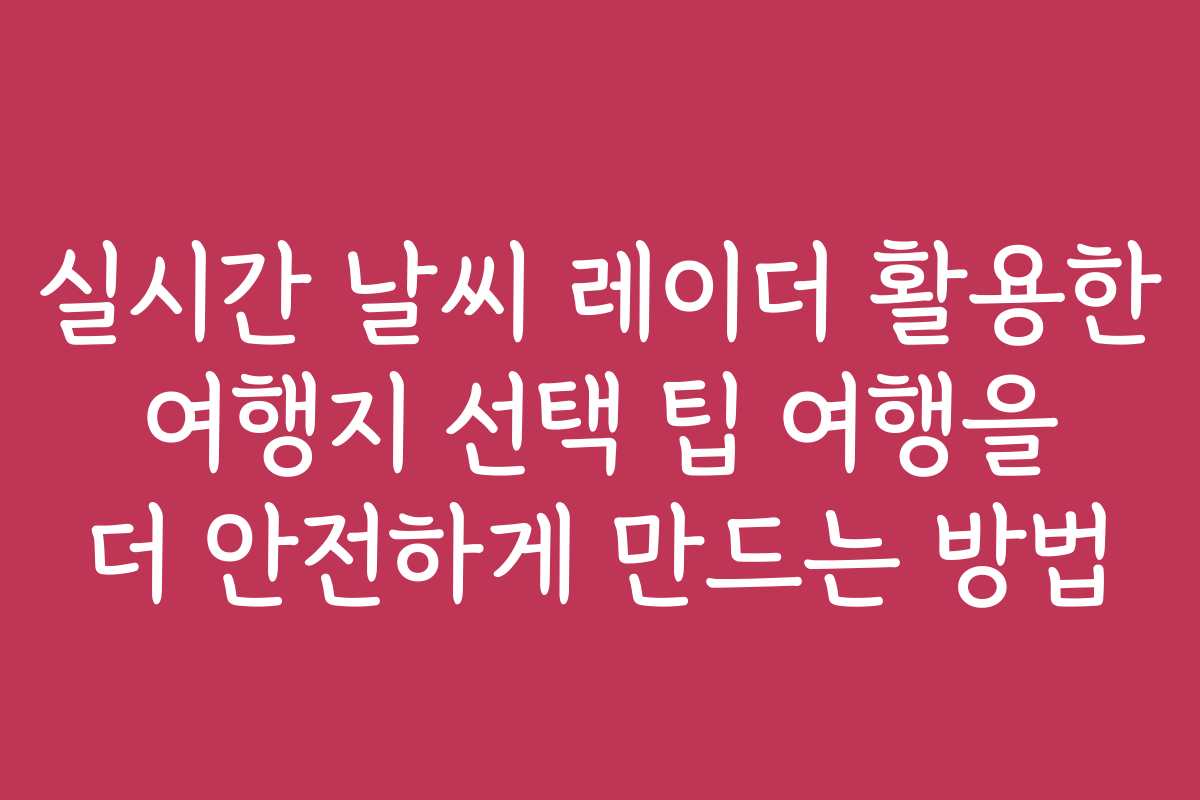 핵심 키워드: 실시간 날씨 레이더, 여행지 선택, 날씨 예보, 안전한 여행, 기후 정보, 예측, 날씨 앱, 여행 준비, 악천후 대처, 실내 액티비티, 날씨 서비스