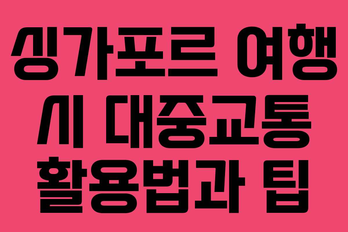 싱가포르의 대중교통 시스템은 매우 체계적이며 편리합니다. 지하철과 버스를 잘 활용하면 다양한 관광지를 쉽게 방문할 수 있습니다. 또한, 대중교통 이용 방법과 교통카드 구매 방법을 숙지하면 더욱 만족스러운 여행이 될 것입니다. 싱가포르의 대중교통을 통해 현지 문화를 느끼며 여행의 즐거움을 더해보세요.
