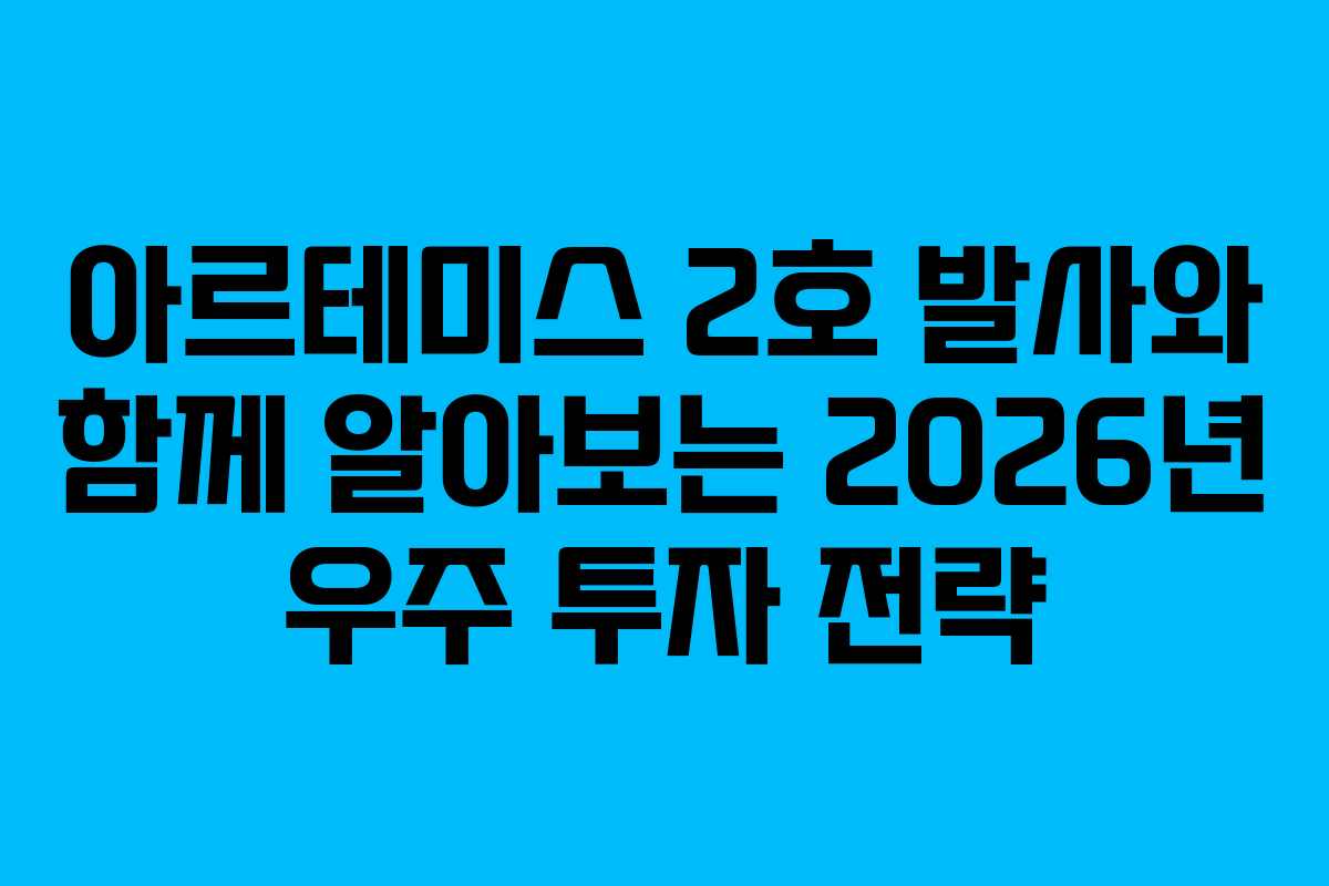 아르테미스 2호 발사와 함께 알아보는 2026년 우주 투자 전략