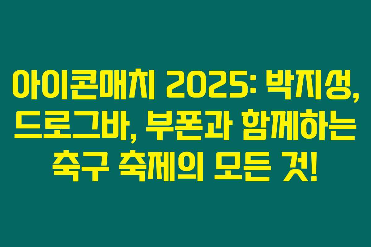 2025년의 뜨거운 여름, 서울에서 펼쳐질 축구 레전드들의 대환상 경기인 아이콘매치에 대한 기대감이 높아지고 있습니다. 박지성, 드로그바, 부폰이 출전하는 이 특별한 경기는 단순한 게임을 넘어 많은 팬과의 소중한 순간을 함께 할 수 있는 기회입니다. 아래를 읽어보시면, 티켓 선예매 방법부터 경기 개요까지 모든 정보를 알아보실 수 있습니다.