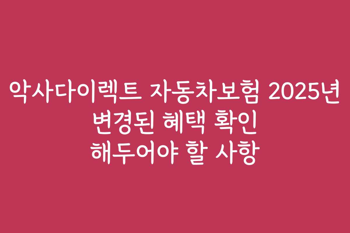 악사다이렉트 자동차보험 2025년 변경된 혜택 확인 해두어야 할 사항