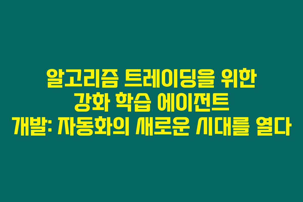 강화 학습을 활용한 알고리즘 트레이딩 에이전트 개발에 대해 알아본 내용을 공유합니다. 제가 직접 경험해본 결과로는, 강화 학습은 에이전트가 환경과 상호작용하면서 거래 결정을 최적화하는 매우 혁신적인 방법이었어요. 이번 포스팅에서는 알고리즘 트레이딩의 기본 개념부터 시작하여, 에이전트 설계, 모델링, 학습 과정, 에러 처리까지 자세히 설명할게요.