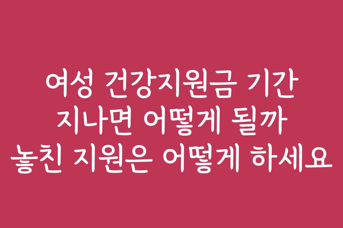 여성 건강지원금 기간 지나면 어떻게 될까 놓친 지원은 어떻게 하세요